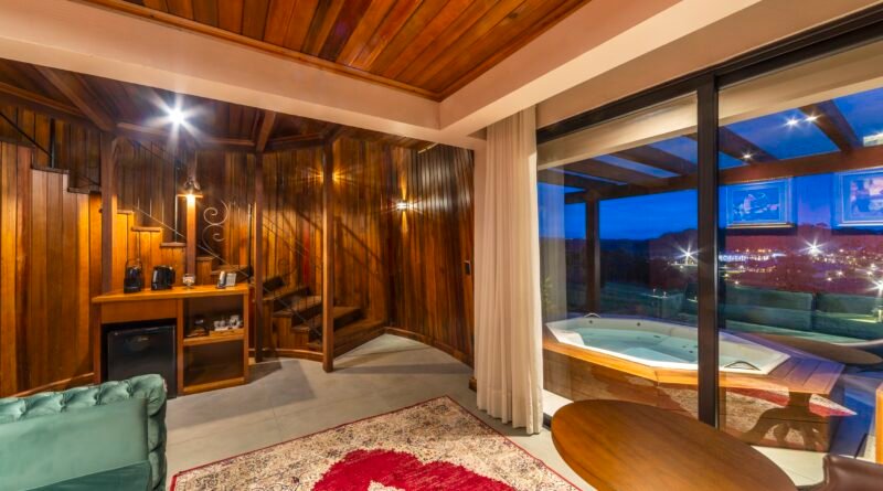 Com dois andares e área total de 58 metros quadrados, cada suíte tem capacidade para acomodar até quatro pessoas, considerando casal e filhos pequenos. A estrutura comporta ainda deck coberto com hidromassagem e mirante com vista para o lago que conecta a barragem que dá nome ao resort.