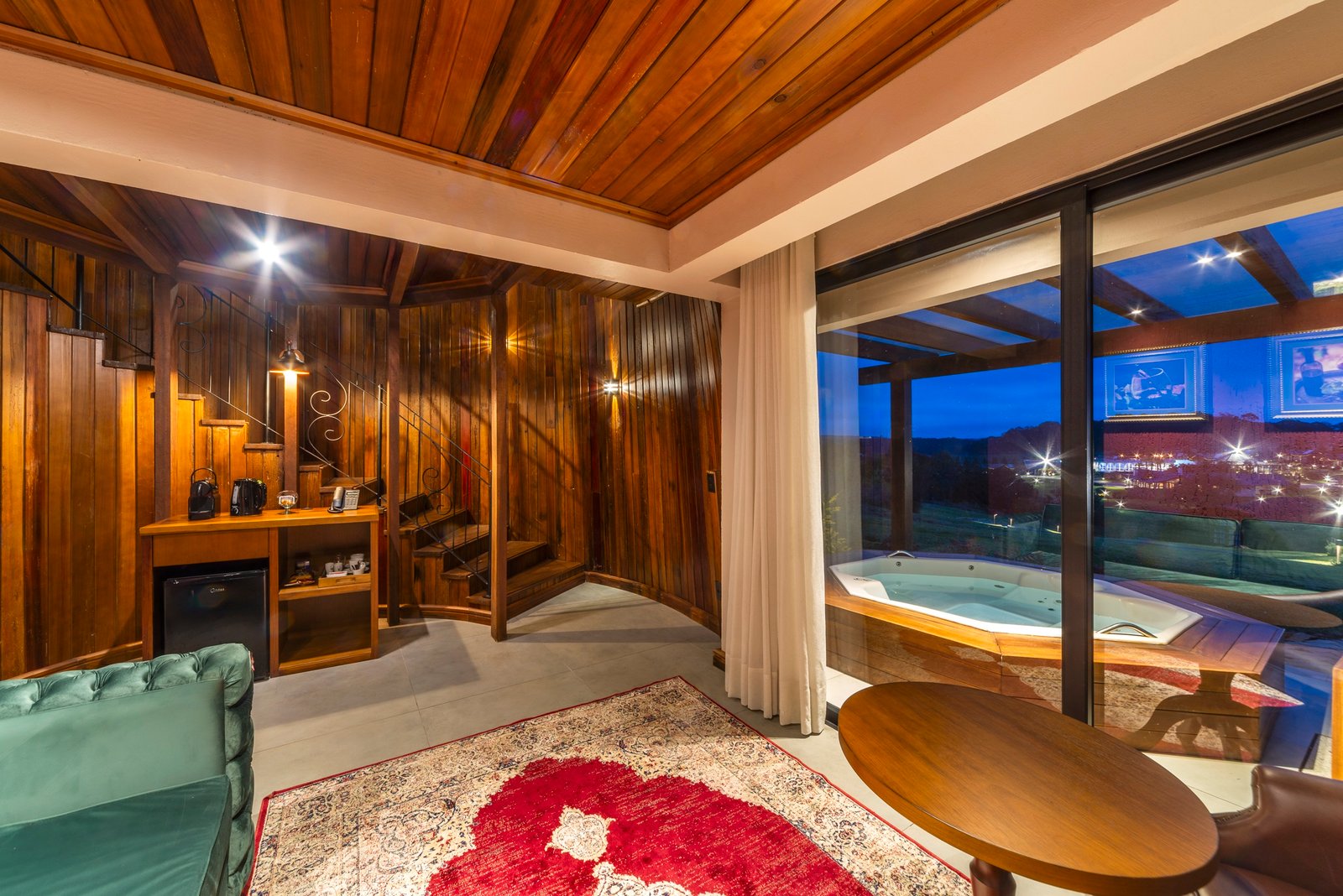 Com dois andares e área total de 58 metros quadrados, cada suíte tem capacidade para acomodar até quatro pessoas, considerando casal e filhos pequenos. A estrutura comporta ainda deck coberto com hidromassagem e mirante com vista para o lago que conecta a barragem que dá nome ao resort.