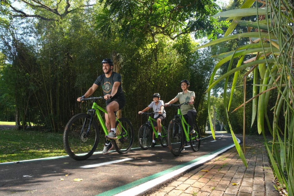 Quem preferir também pode levar sua própria bicicleta para pedalar pelos atrativos do parque. Além da nova Ciclovia das Cataratas, os ciclistas têm acesso à Trilha da Canafístula, ao Caminho das Bananeiras e ao Poço Preto — rotas que oferecem uma imersão única na Mata Atlântica. Veja onde pedalar no mapa da ciclovia: cataratasdoiguacu.com.br/uc-iguacu_ciclovia-cataratas_mapa-web.pdf